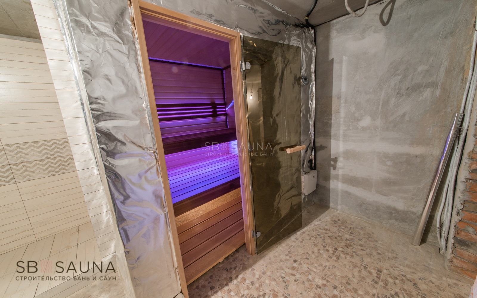 При строительстве данной финской сауны заказчик остановил свой выбор на классическом варианте.Для облицовки были использованы экологически чистые материалы- кавказская липа и термоосина.