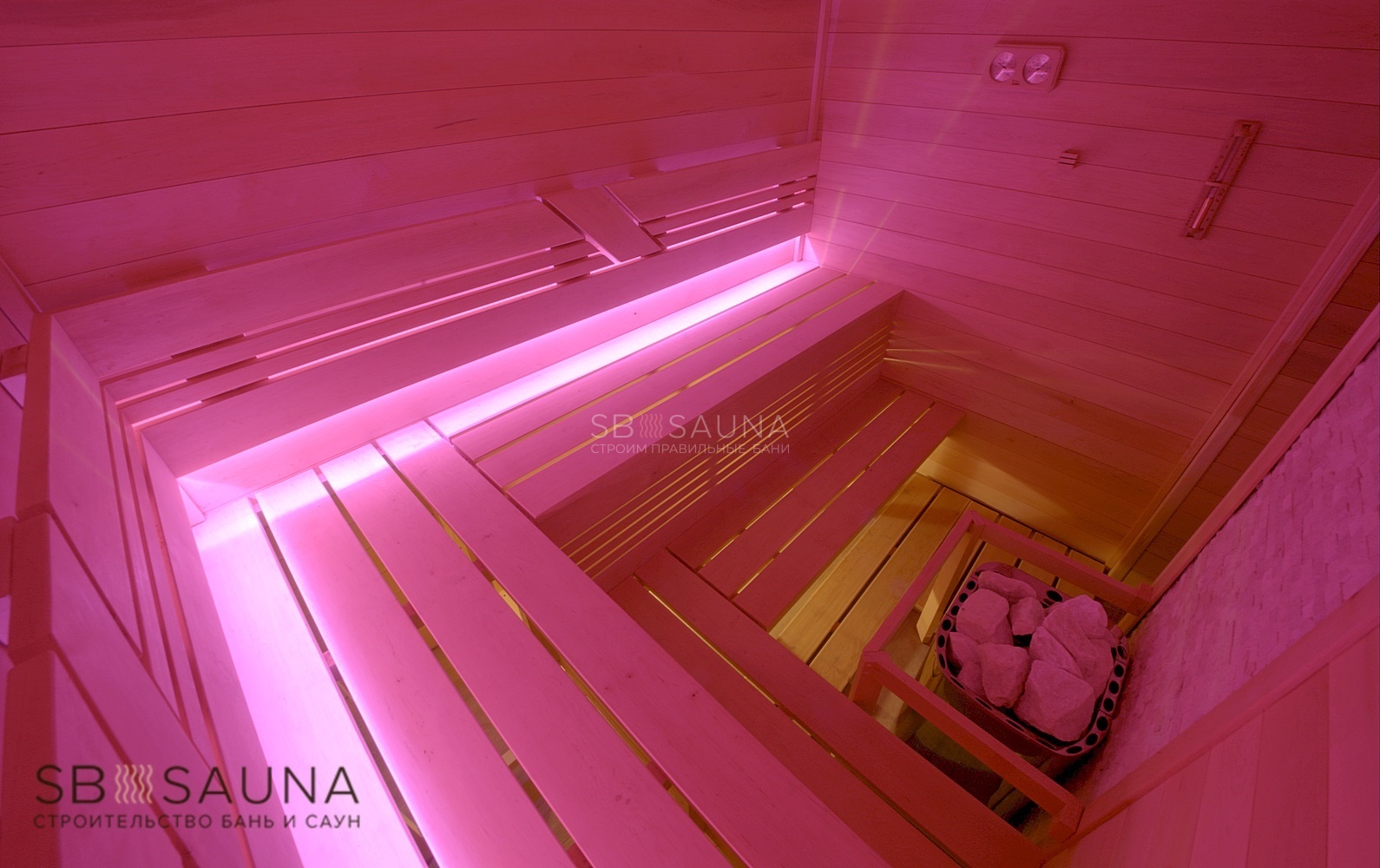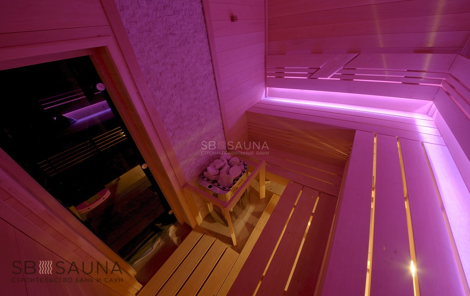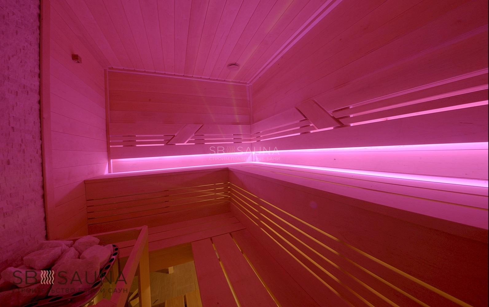 Эта сауна - яркий пример того, как современно и ярко может выглядеть классическая сауна.